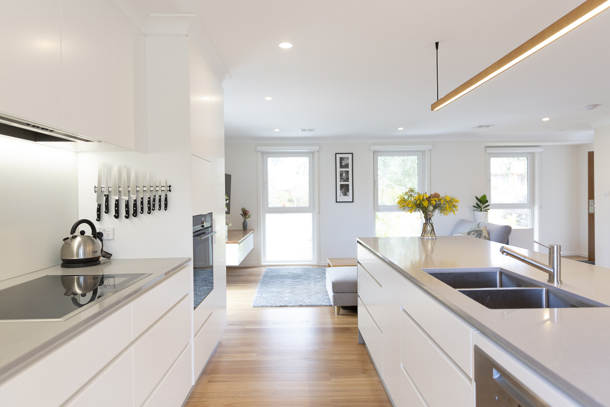 A 70s home in Macquarie became lighter and brighter when we removed the walls between the living, dining and kitchen.