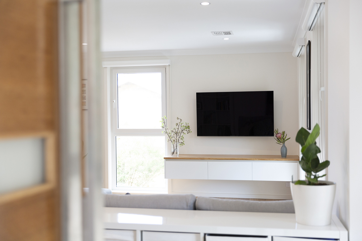 Simplicity also supplied the new, matching laundry, bathroom and TV unit joinery, with Caesarstone and blackbutt timber benchtops to complete the look.